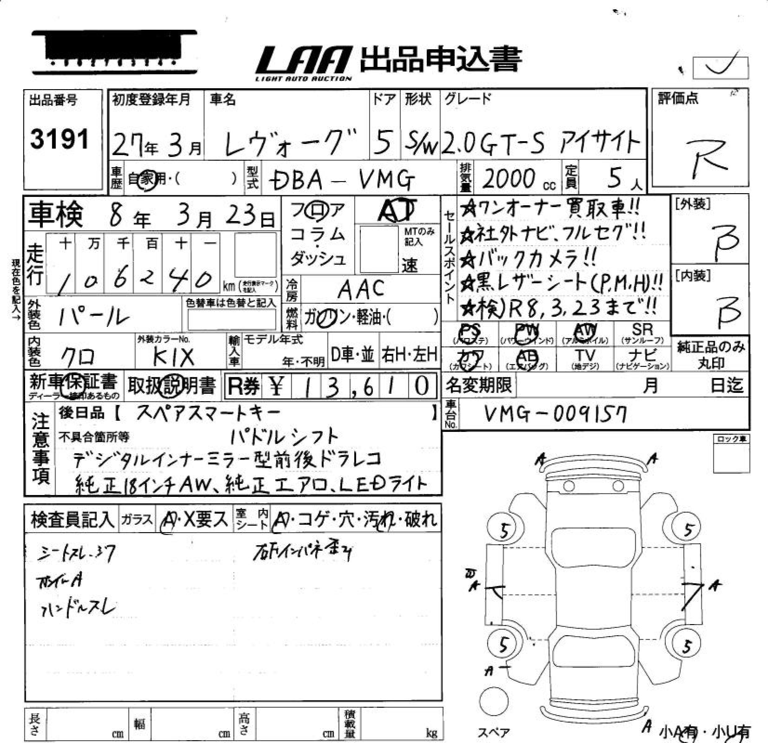 SUBARU LEVORG - лот 3191