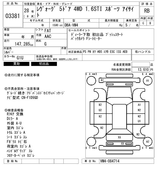 SUBARU LEVORG - лот 3381