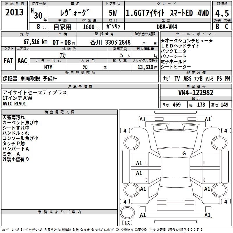SUBARU LEVORG - лот 2013