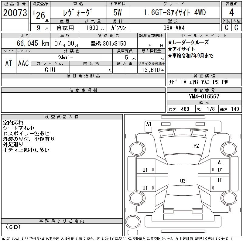 SUBARU LEVORG - лот 20073