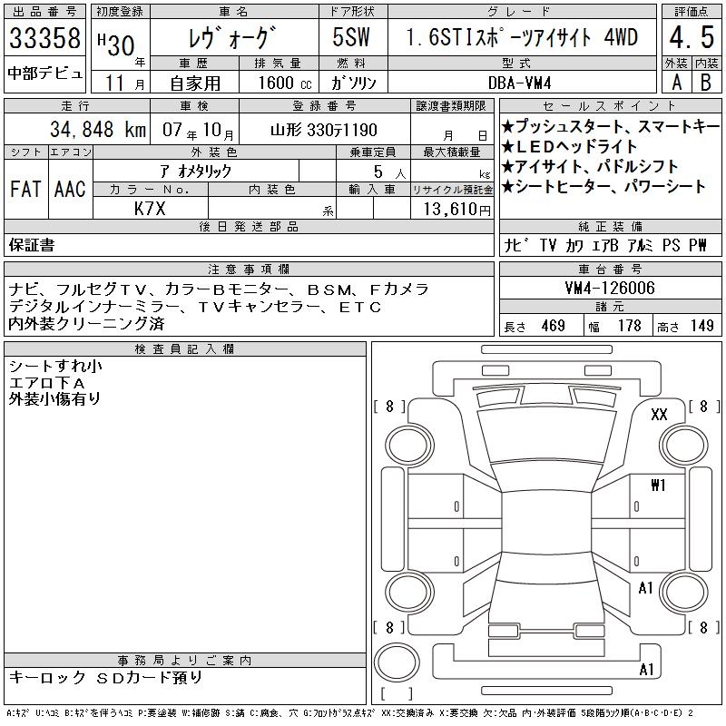 SUBARU LEVORG - лот 33358