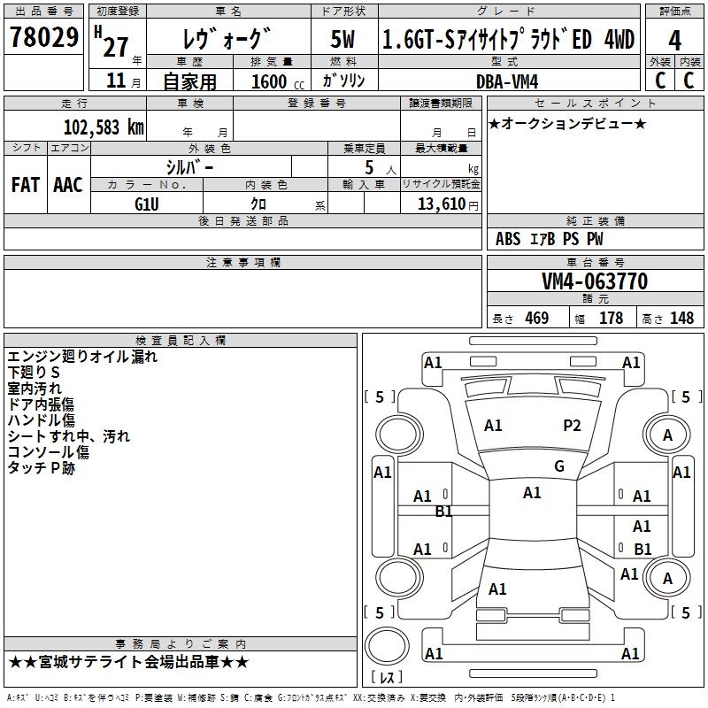 SUBARU LEVORG - лот 78029