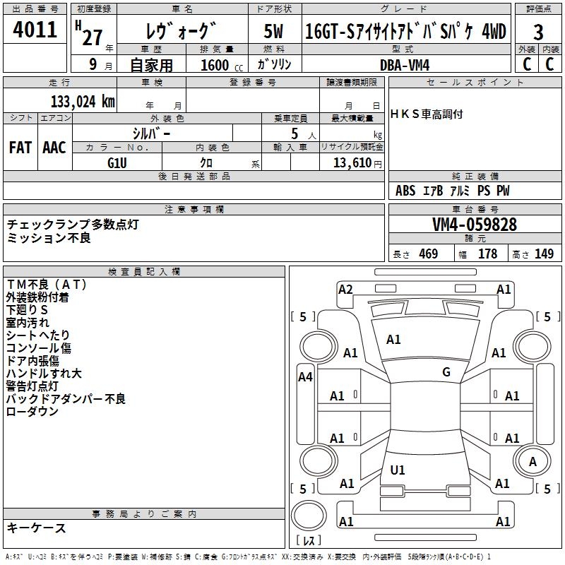 SUBARU LEVORG - лот 4011