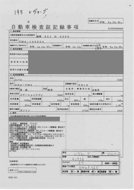 SUBARU LEVORG - лот 195
