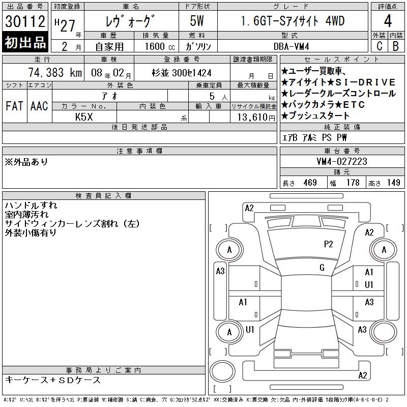 SUBARU LEVORG - лот 30112