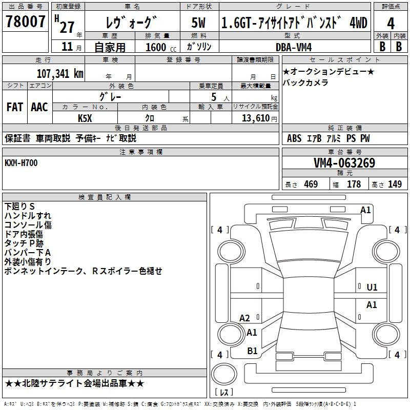 SUBARU LEVORG - лот 78007