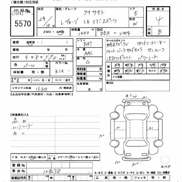 SUBARU LEVORG - лот 5570