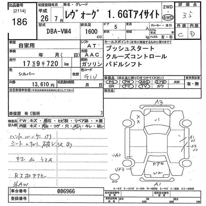 SUBARU LEVORG - лот 186