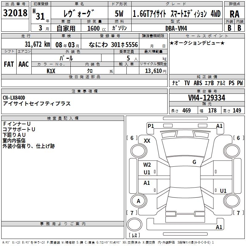 SUBARU LEVORG - лот 32018