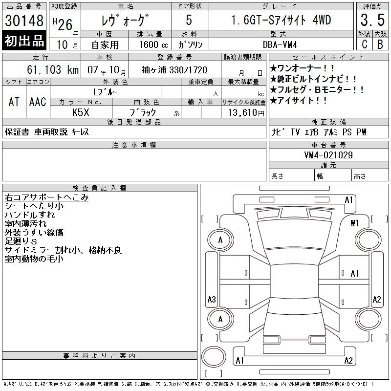 SUBARU LEVORG - лот 30148