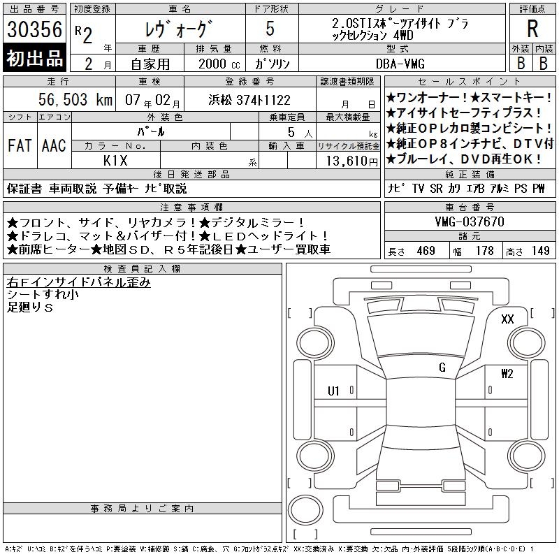 SUBARU LEVORG - лот 30356