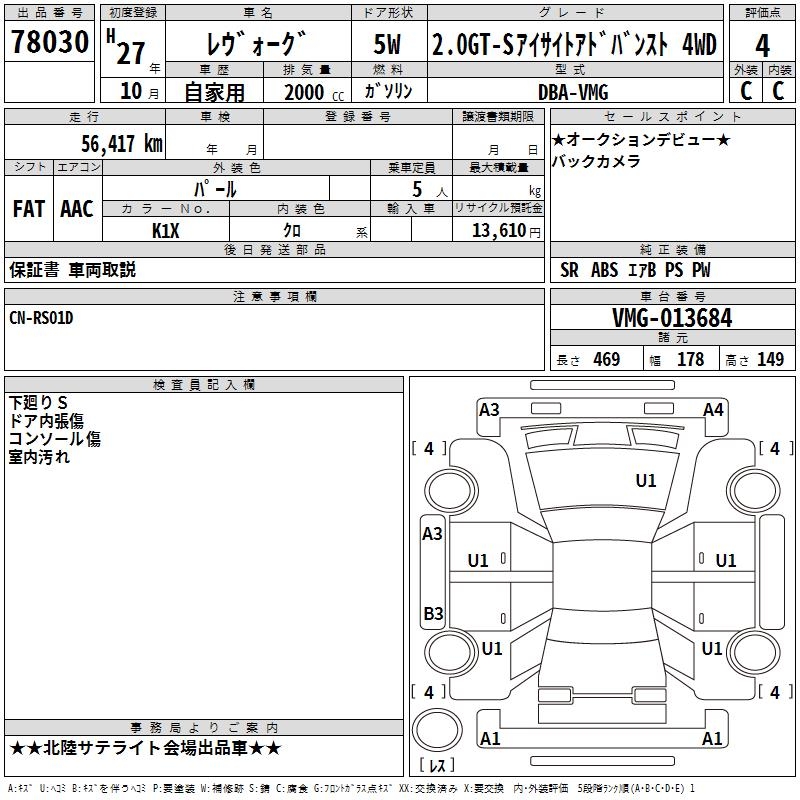 SUBARU LEVORG - лот 78030