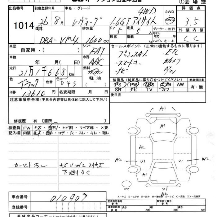 SUBARU LEVORG - лот 1014