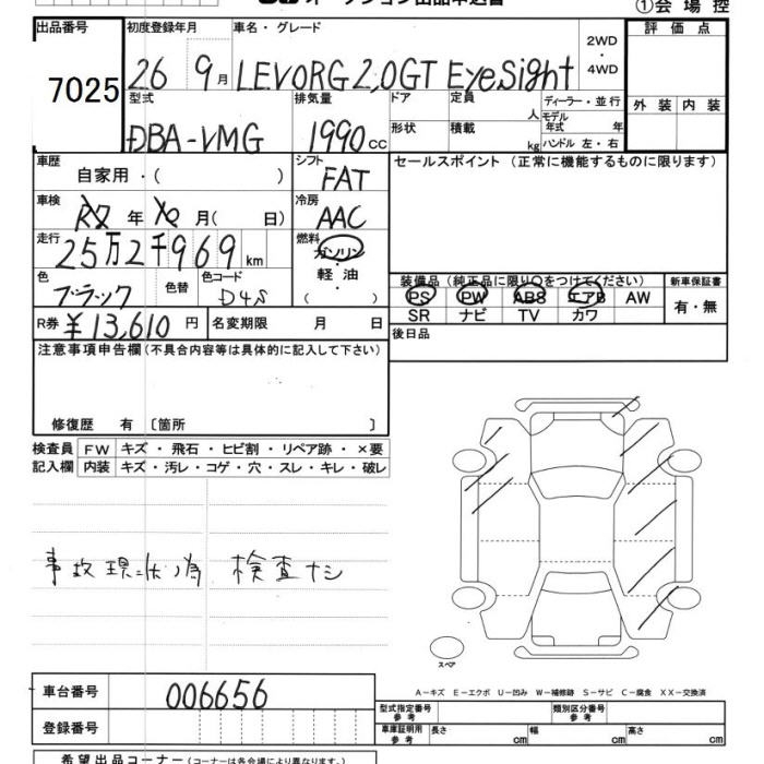 SUBARU LEVORG - лот 7025