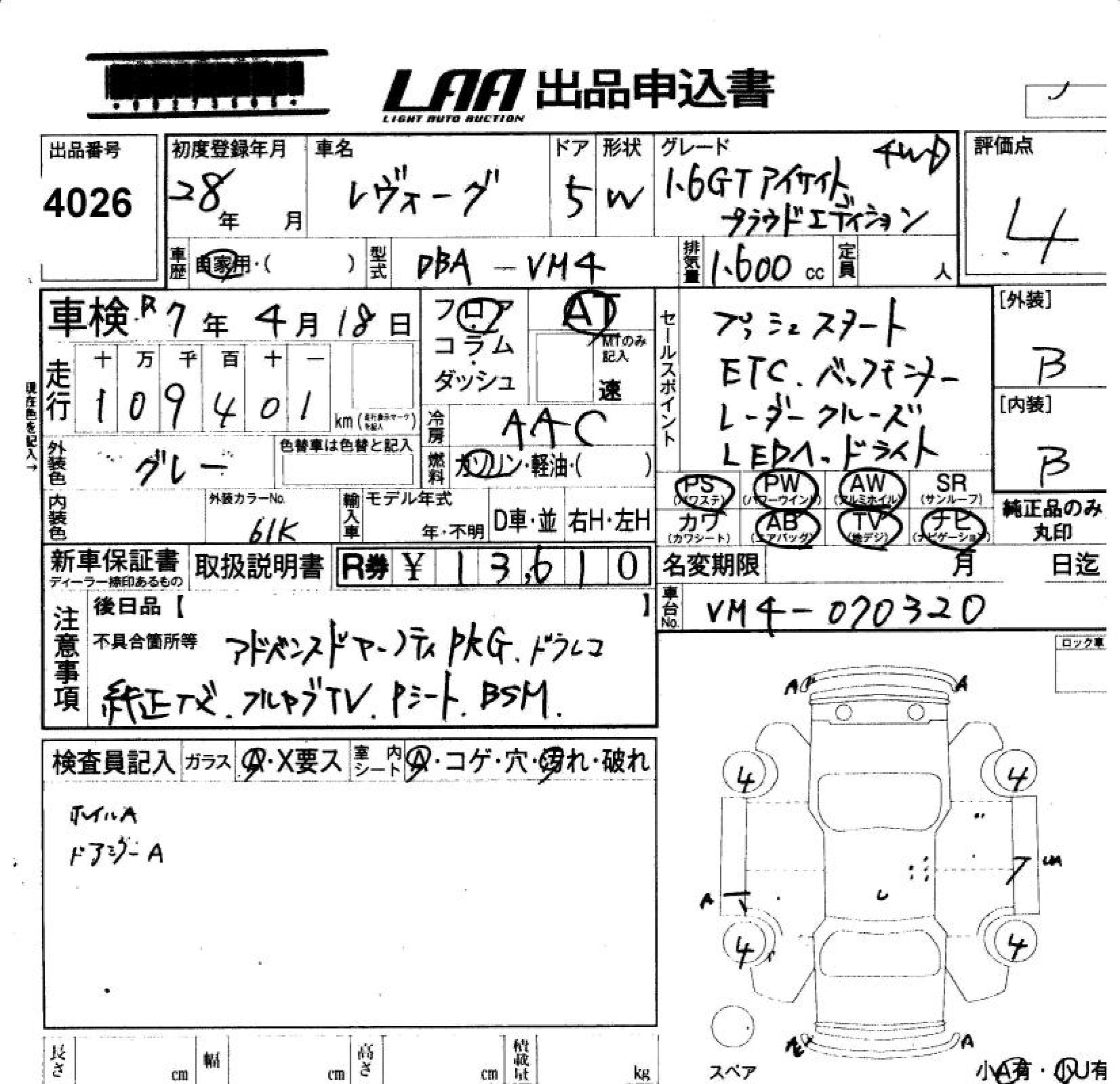 SUBARU LEVORG - лот 4026