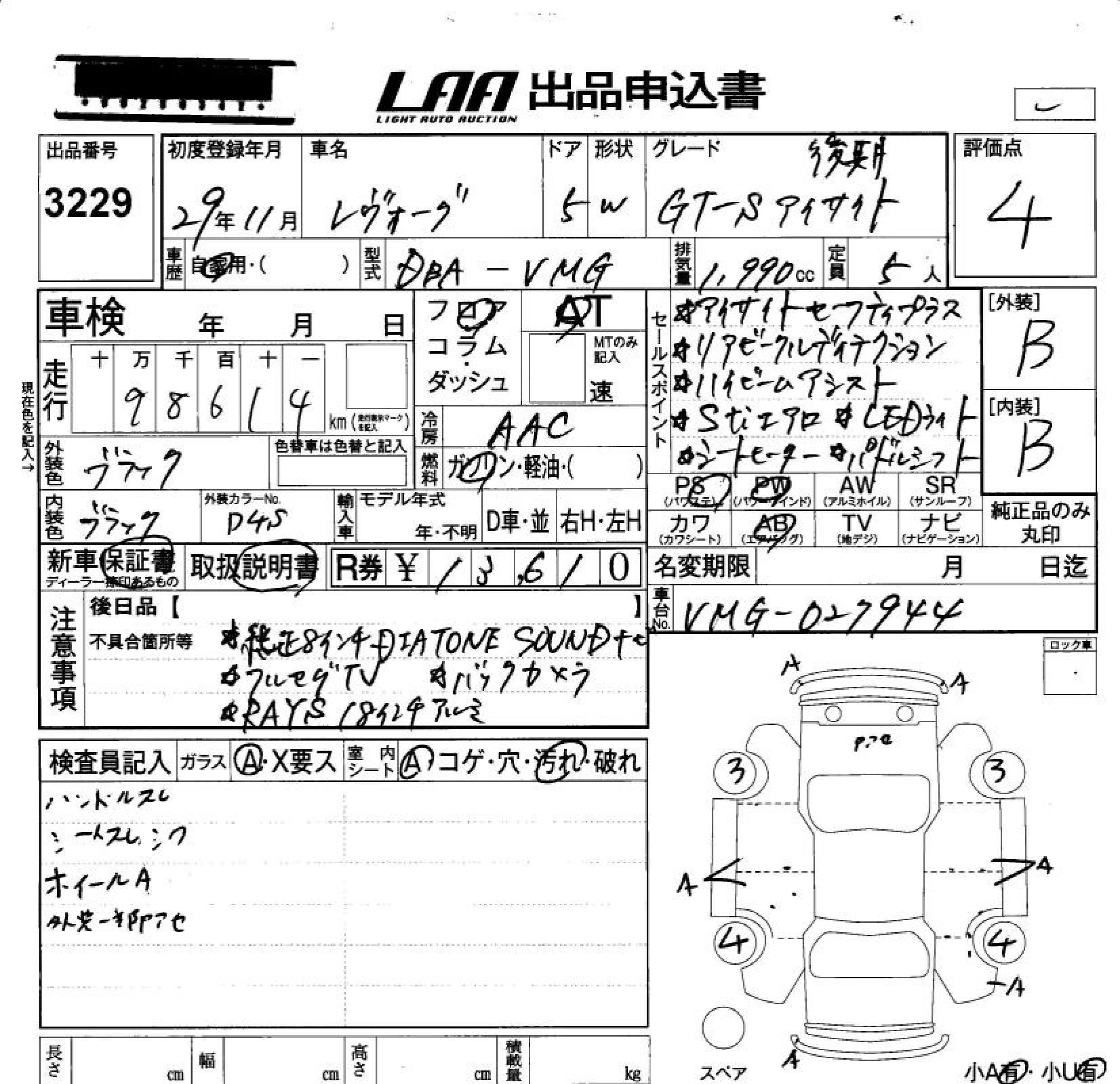 SUBARU LEVORG - лот 3229