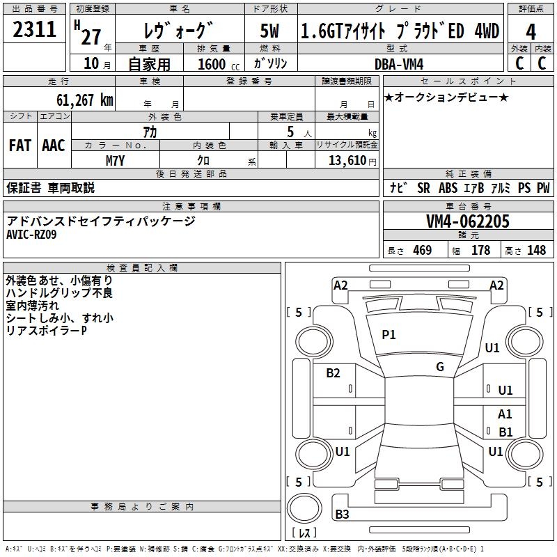 SUBARU LEVORG - лот 2311