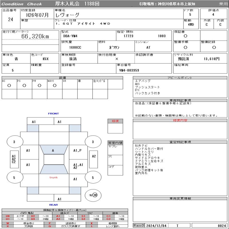 SUBARU LEVORG - лот 24