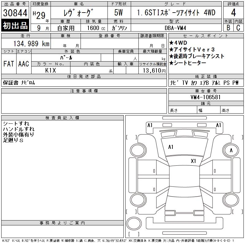 SUBARU LEVORG - лот 30844