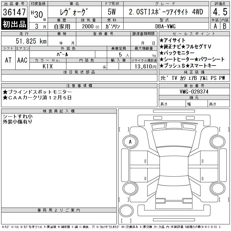 SUBARU LEVORG - лот 36147