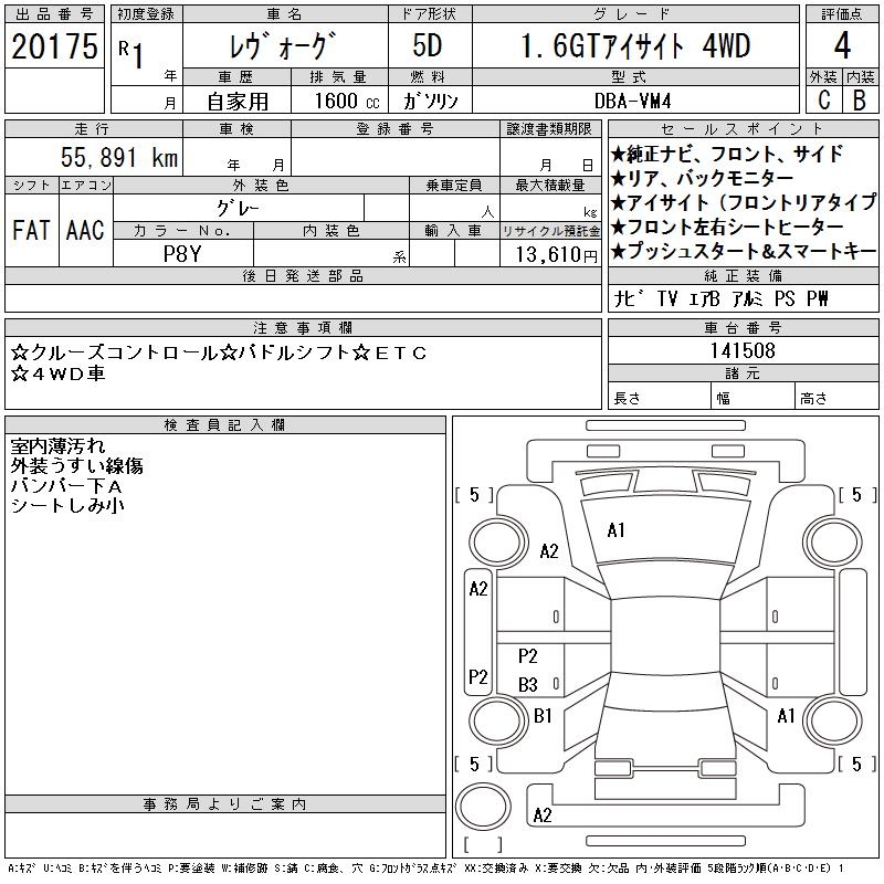 SUBARU LEVORG - лот 20175