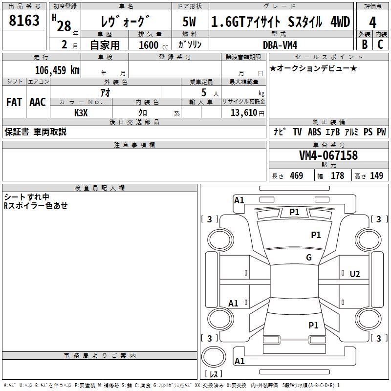 SUBARU LEVORG - лот 8163