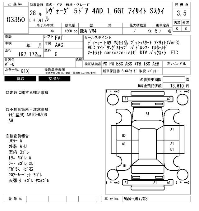 SUBARU LEVORG - лот 3350