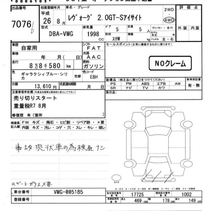SUBARU LEVORG - лот 7076