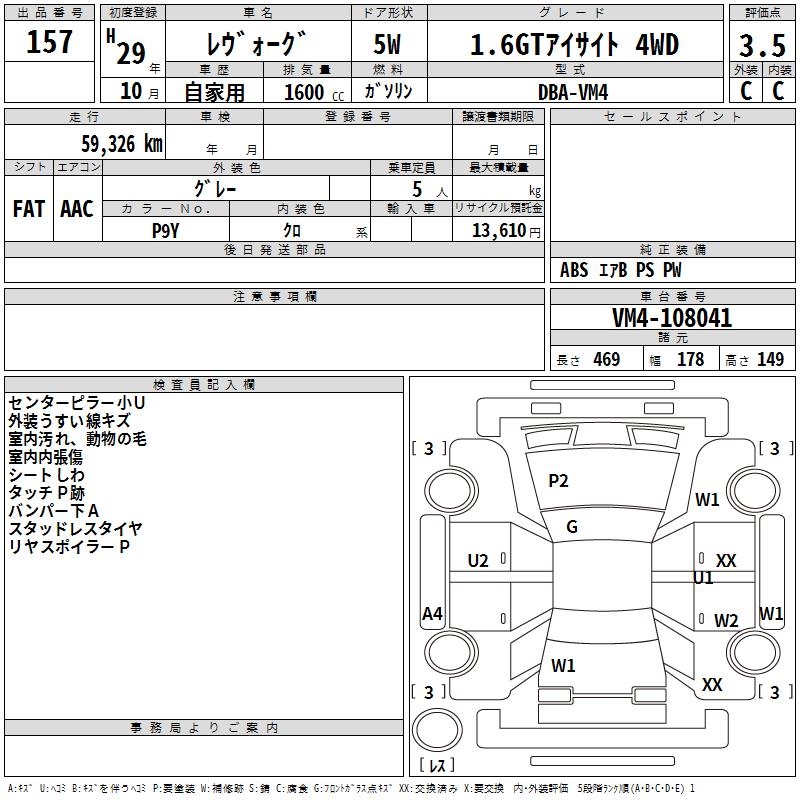 SUBARU LEVORG - лот 157