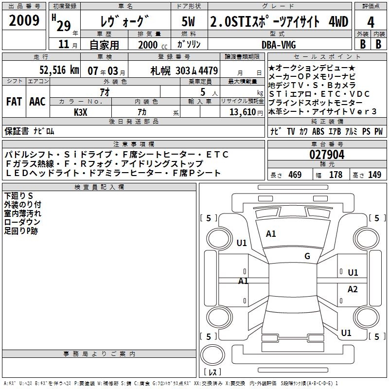 SUBARU LEVORG - лот 2009