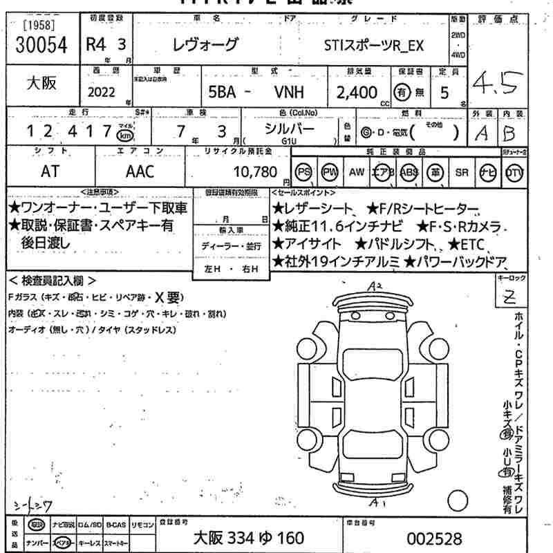 SUBARU LEVORG - лот 30054