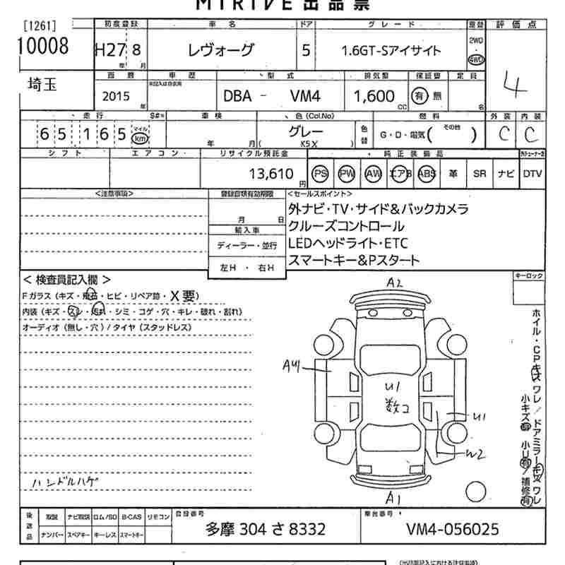 SUBARU LEVORG - лот 10008