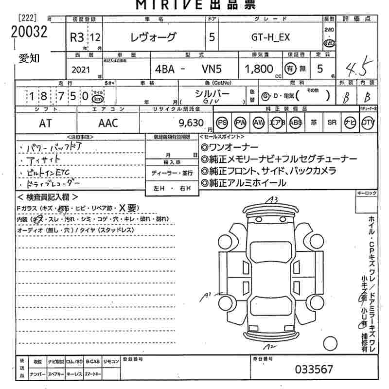 SUBARU LEVORG - лот 20032