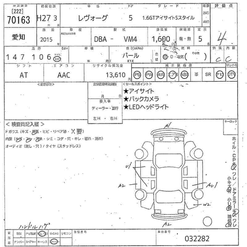 SUBARU LEVORG - лот 70163