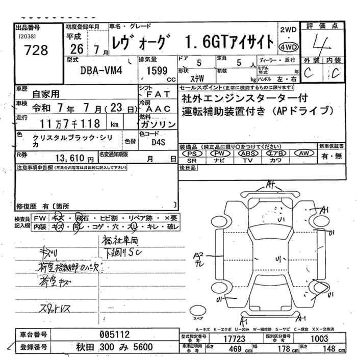 SUBARU LEVORG - лот 728