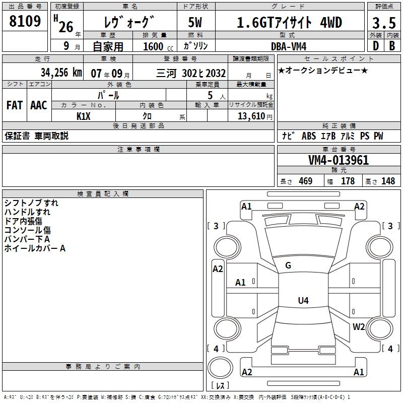 SUBARU LEVORG - лот 8109