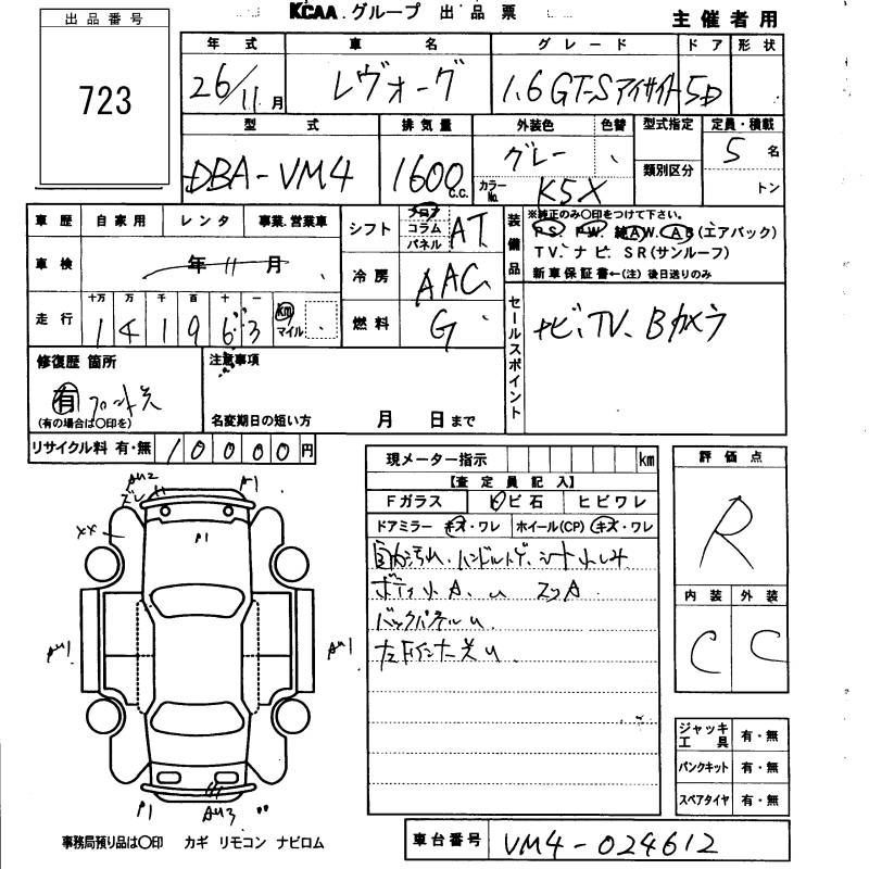SUBARU LEVORG - лот 723