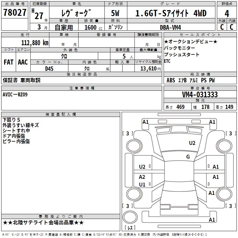 SUBARU LEVORG - лот 78027