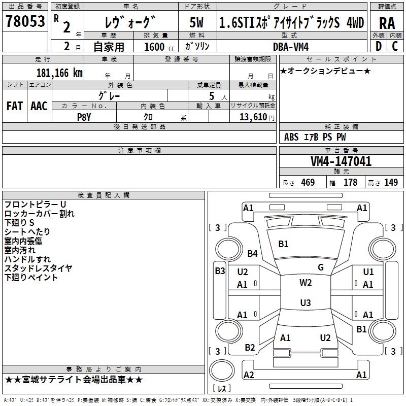 SUBARU LEVORG - лот 78053