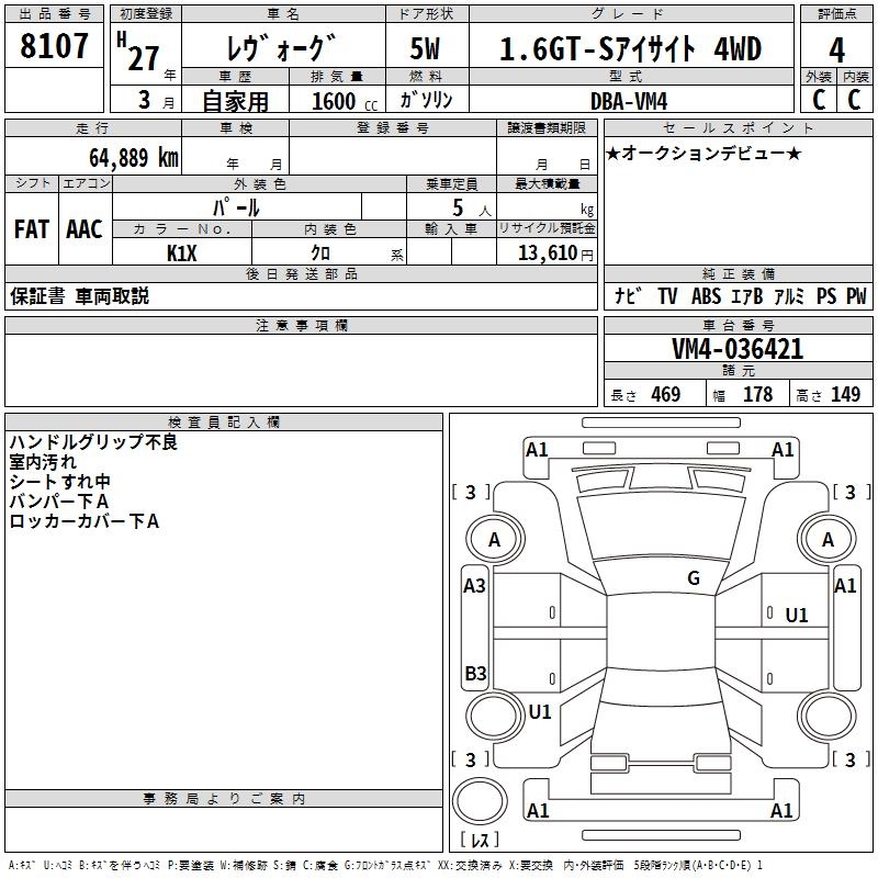 SUBARU LEVORG - лот 8107