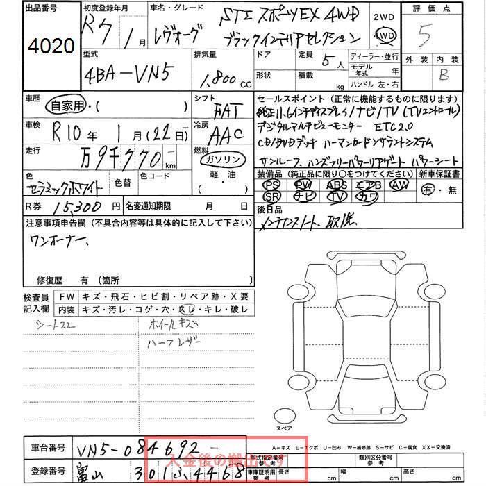 SUBARU LEVORG - лот 4020