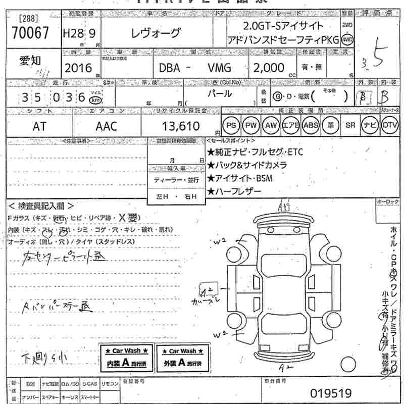 SUBARU LEVORG - лот 70067