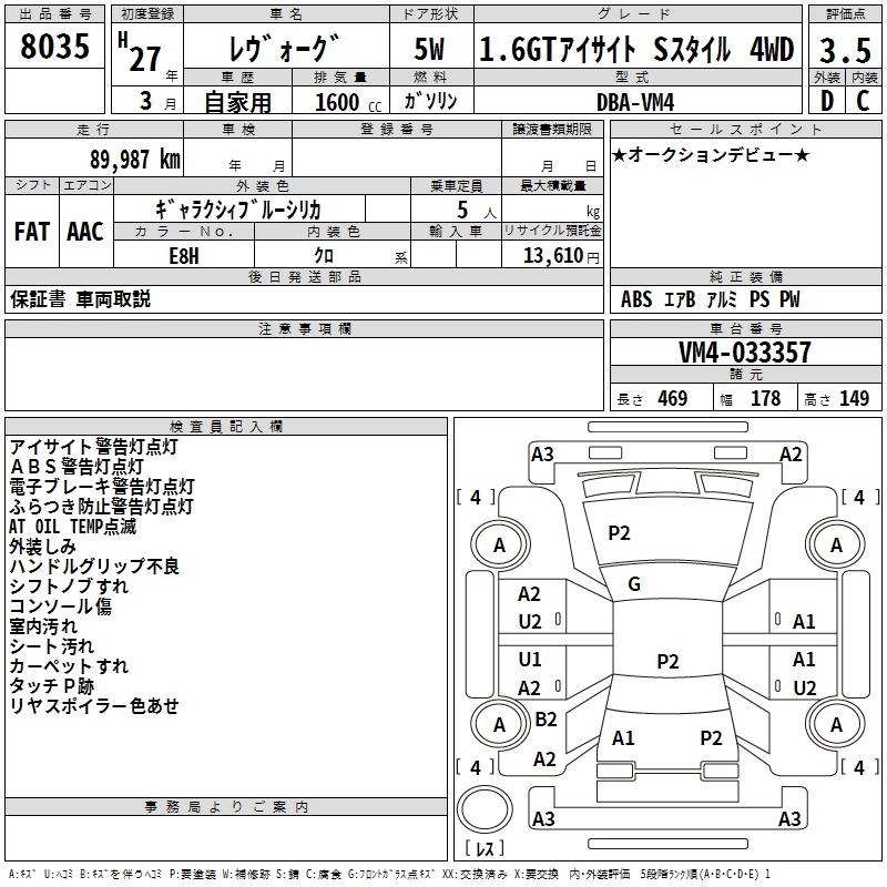 SUBARU LEVORG - лот 8035