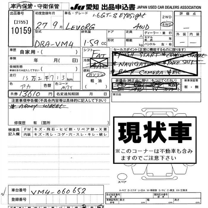 Все аукционы SUBARU LEVORG