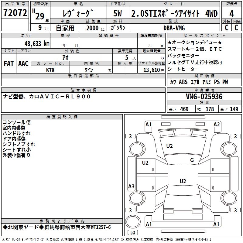 SUBARU LEVORG - лот 72072