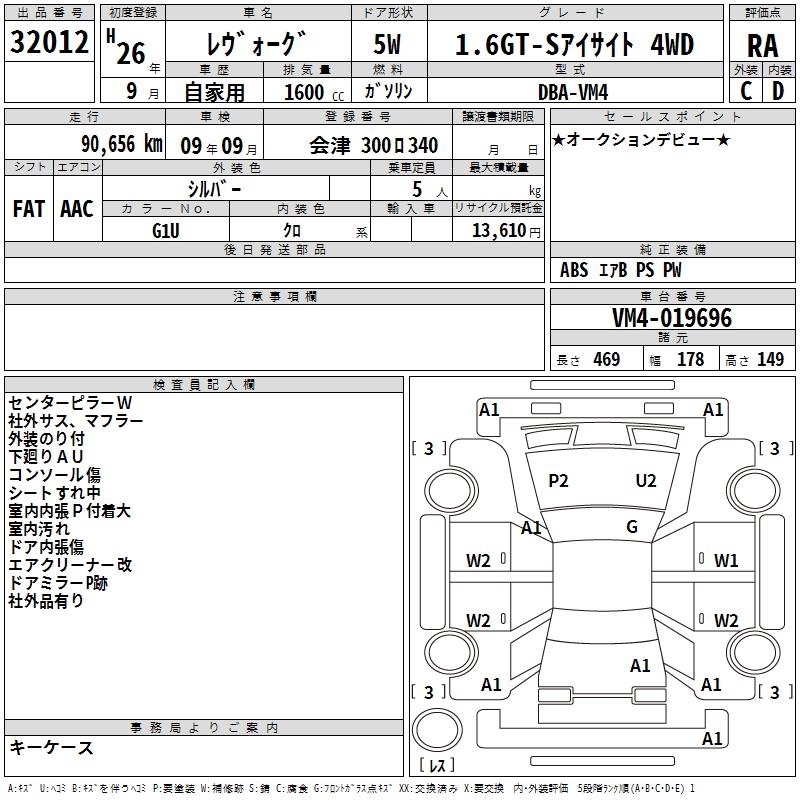 SUBARU LEVORG - лот 32012