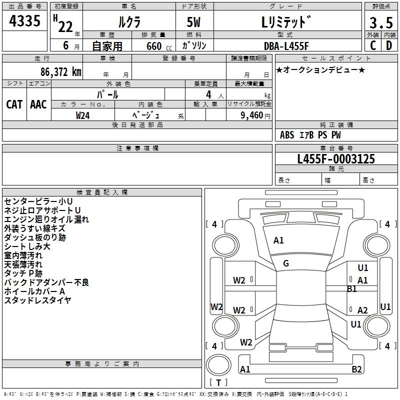 SUBARU LUCRA - лот 4335