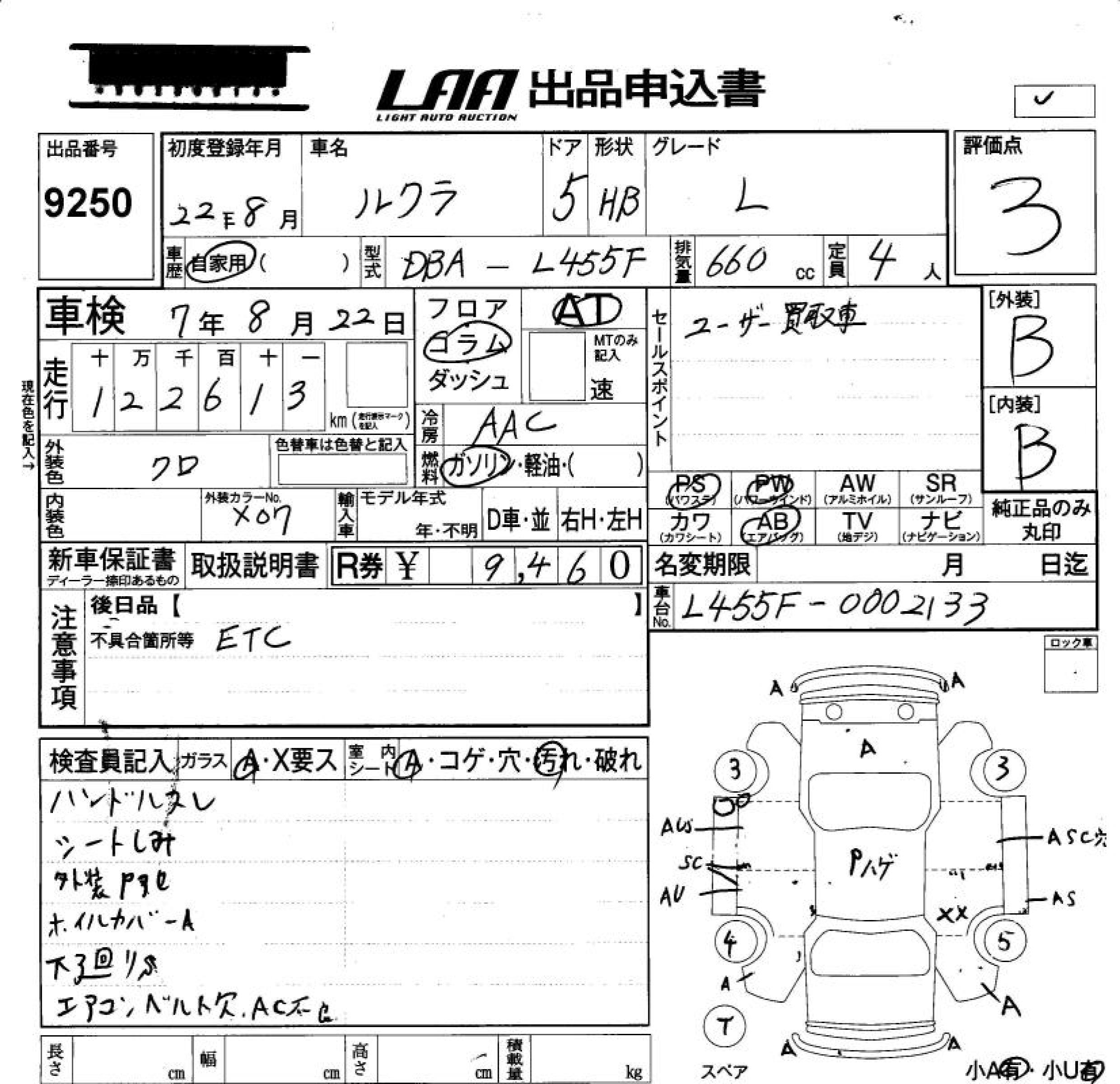 SUBARU LUCRA - лот 9250