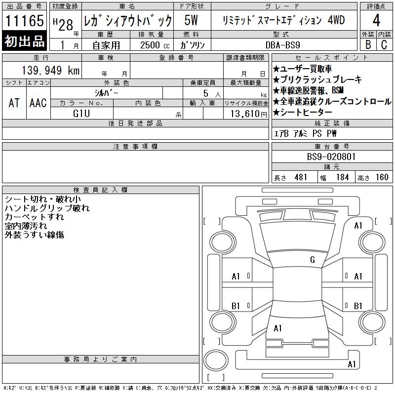 SUBARU OUTBACK LIMITED SMART EDITION 4WD - лот 11165