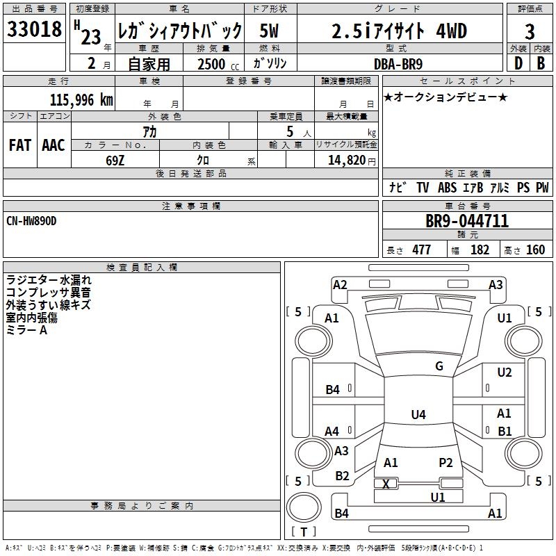 SUBARU OUTBACK 2.5I EYESIGHT 4WD - лот 33018